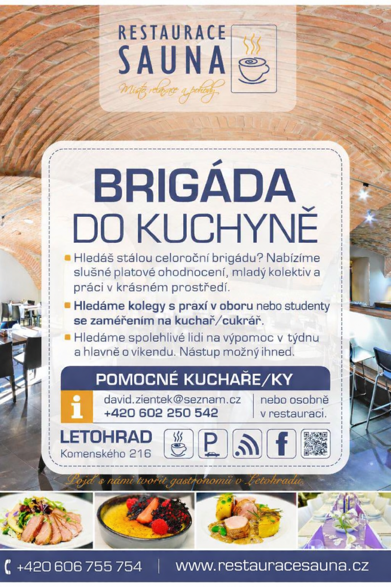 Do naší restaurace hledáme zaměstnance na HHP i brigádníky. Chceš pracovat v naší restauraci a podílet se na dobré gastronomii v Letohradu?